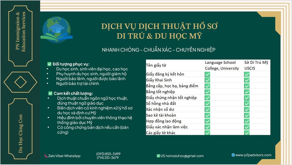 Dịch thuật hồ sơ du học bà bảo lãnh di trú Mỹ – Chuẩn xác, uy tín, đúng yêu cầu