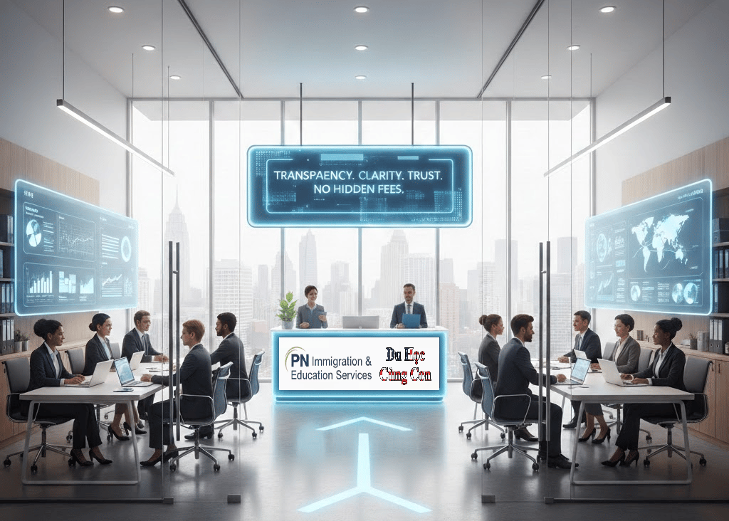 Tất cả chi phí, hợp đồng, lộ trình học tập, học phí, và từng bước xử lý hồ sơ đều được công khai rõ ràng.