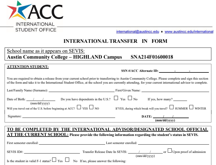 Sinh viên F-1 bắt buộc phải bắt đầu kỳ học tiếp theo ngay sau khi chuyển để duy trì tình trạng hợp pháp.